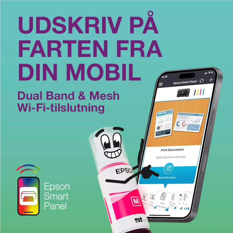 Printkvaliteten er høj og skarp – perfekt til både dokumenter, farvegrafik og præsentationer. Med duplexprint sparer du både tid og papir, og den trådløse tilslutning via Wi-Fi, Wi-Fi Direct og Epson Smart Panel-appen gør det let at udskrive fra mobil, tablet eller laptop.