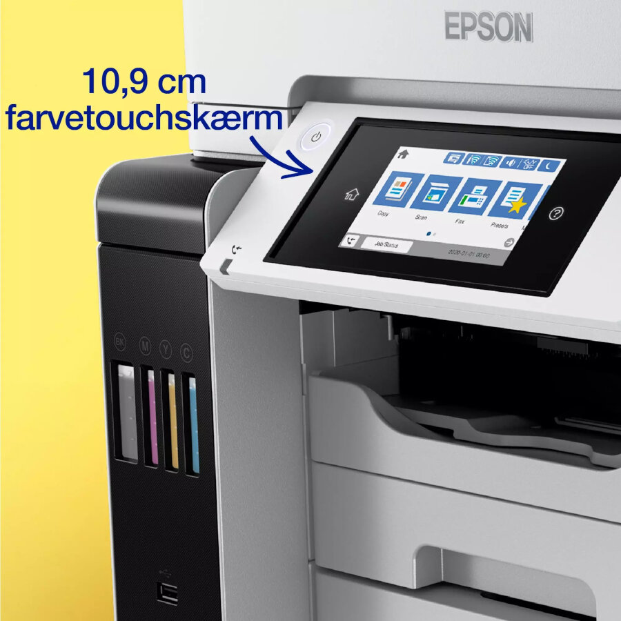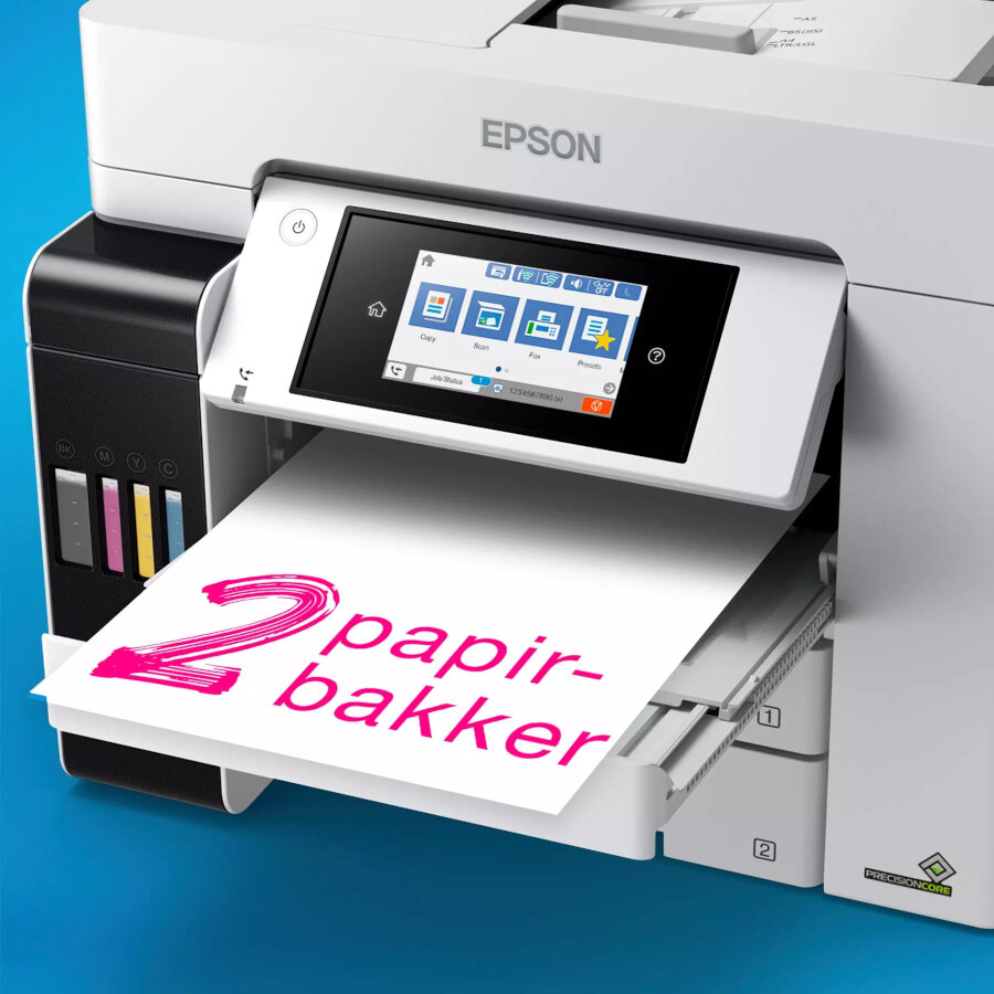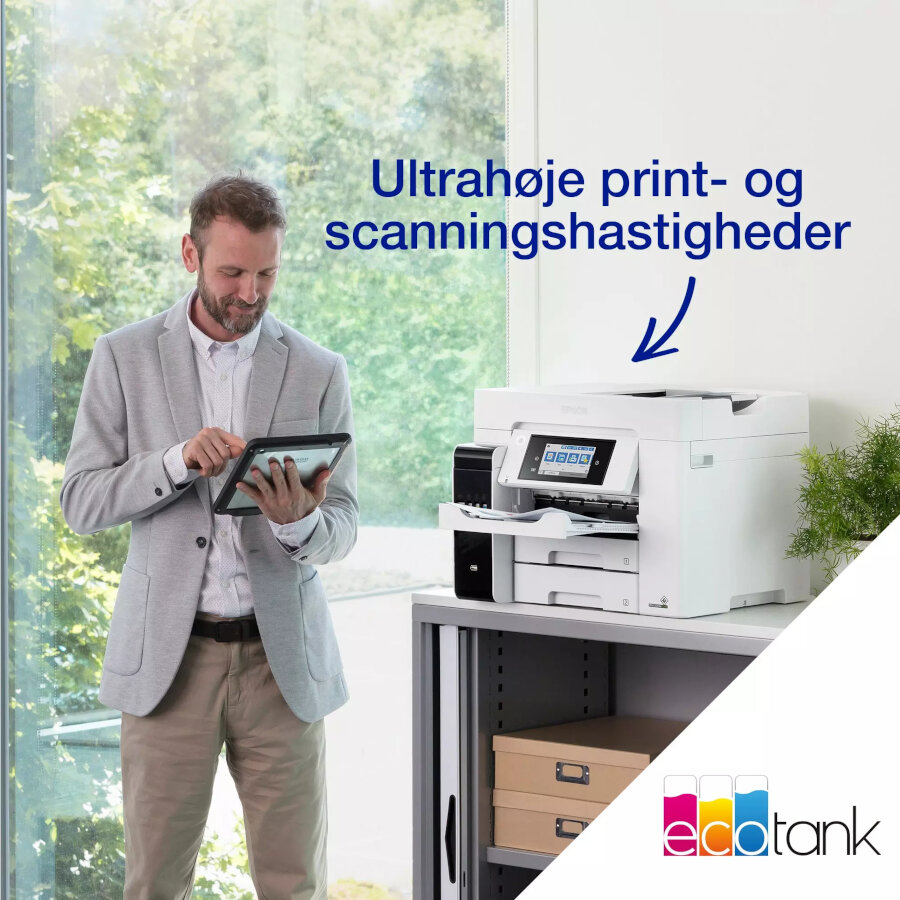 ET-5885 understøtter en lang række tilslutningsmuligheder, herunder Wi-Fi, Ethernet og mobiludskrivning, så du nemt kan printe fra dine enheder. Den automatiske dokumentføder og dobbeltsidede udskrivning gør kontorarbejdet mere effektivt.
