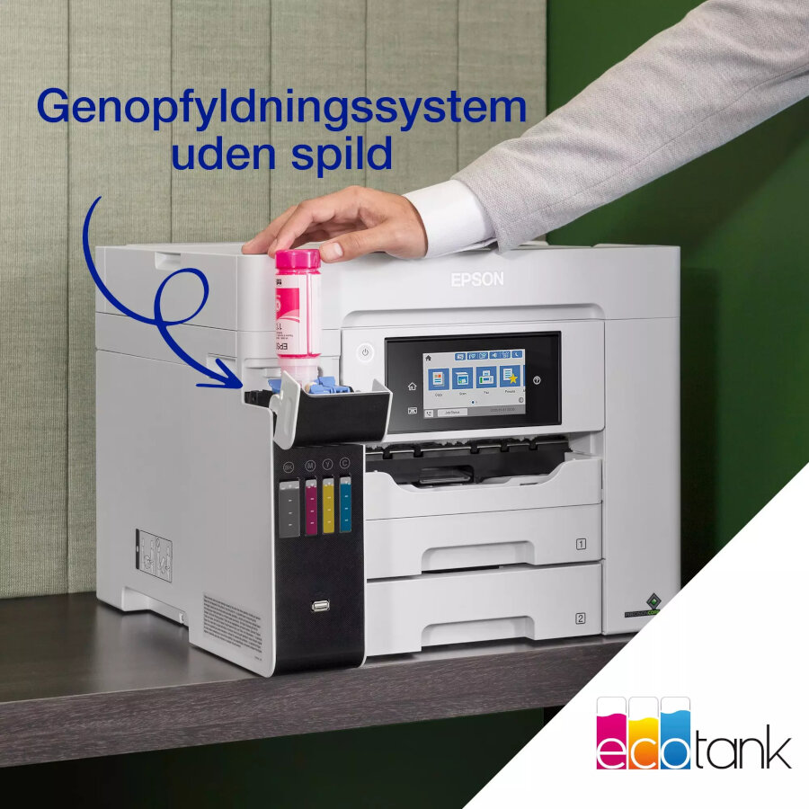 Epson EcoTank Pro ET-5885 er en avanceret multifunktionsprinter designet til virksomheder, der har brug for høj produktivitet og lave driftsomkostninger. Med EcoTank-systemet slipper du for traditionelle blækpatroner, hvilket giver en mere økonomisk og miljøvenlig løsning. Printeren har hurtig sort/hvid- og farveudskrivning samt præcis scanning og kopiering.