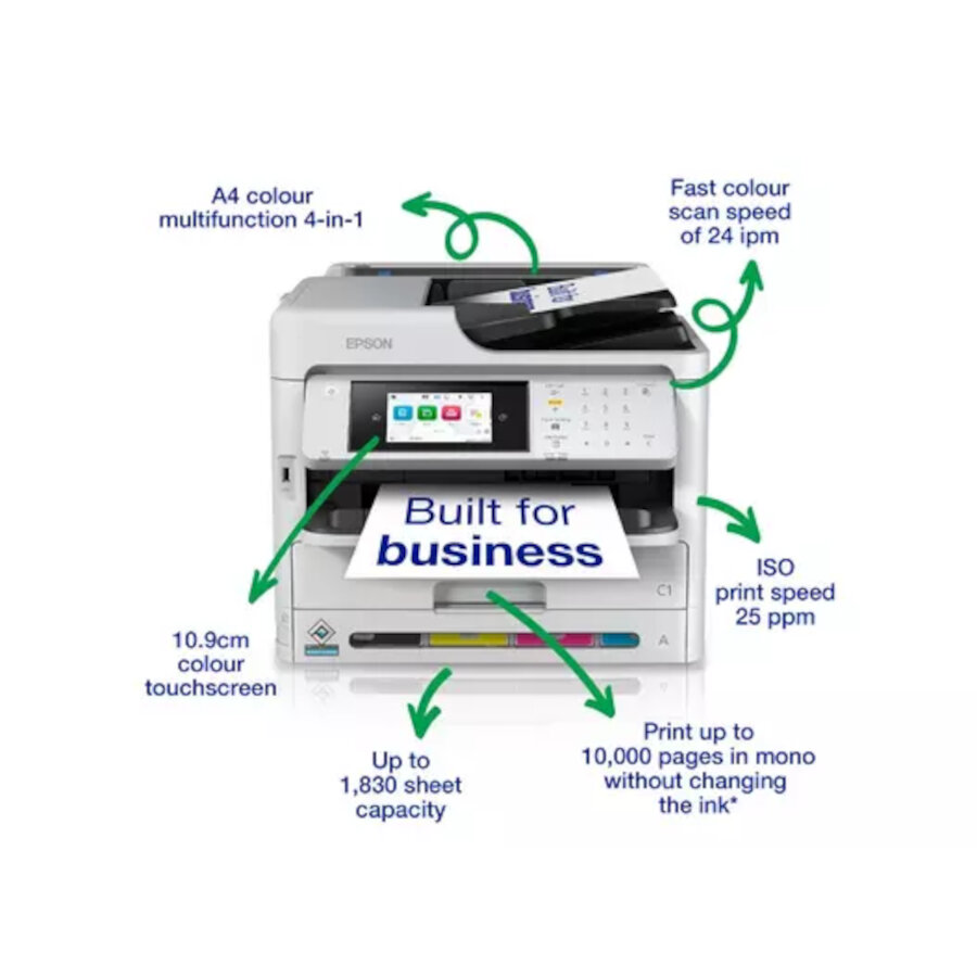 Epson WorkForce Pro WF-C5890DWF C11CK23401 er en kraftfuld multifunktionsprinter, der er ideel til små og mellemstore virksomheder. Printeren tilbyder hurtig og effektiv print, scanning, kopiering og fax i én kompakt enhed.