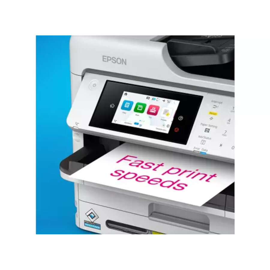 WF-C5890DWF understøtter papirformater op til A4 og kan udskrive med en hastighed på op til 34 sider pr. minut i sort/hvid og 32 sider pr. minut i farve. Den automatiske dokumentfremfører (ADF) gør det nemt at håndtere flersidede dokumenter, mens dobbeltsidet print (duplex) sparer papir og tid.