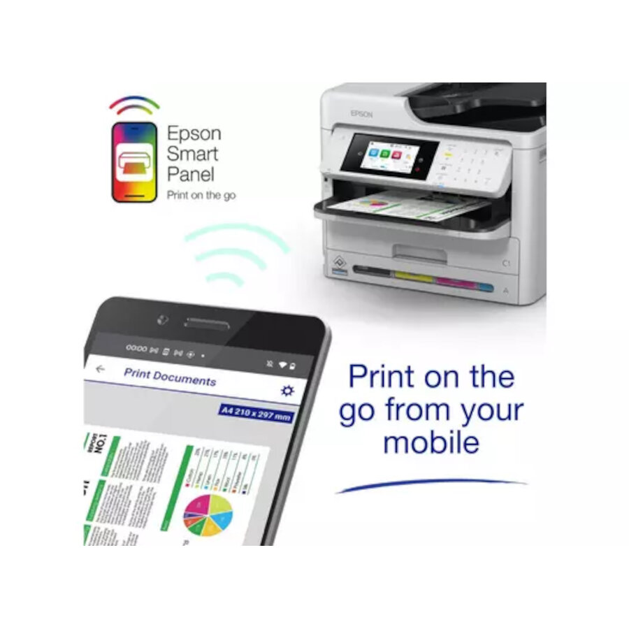 Printeren tilbyder fleksible tilslutningsmuligheder med USB, Ethernet og trådløs Wi-Fi-forbindelse. Den understøtter også mobilprint via Apple AirPrint, Google Cloud Print og Epson Connect, så du kan printe direkte fra smartphones, tablets og bærbare computere.