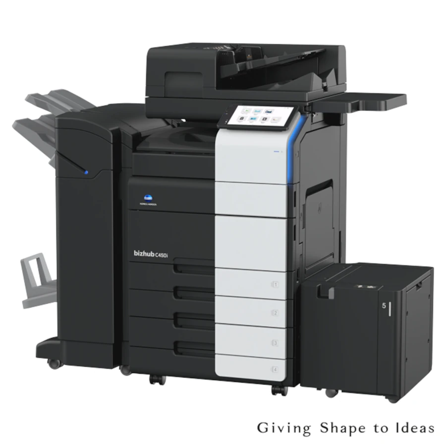 Konica Minolta Bizhub C450i i leveres køreklar på brugsstedet Vi installere drivere på arbejdspladser Vi opsætter scan til mail på sikret SMTP server Klargøring, levering og installation, Kr. 2.900,- excl. moms Billeder er vist med ekstraudstyr